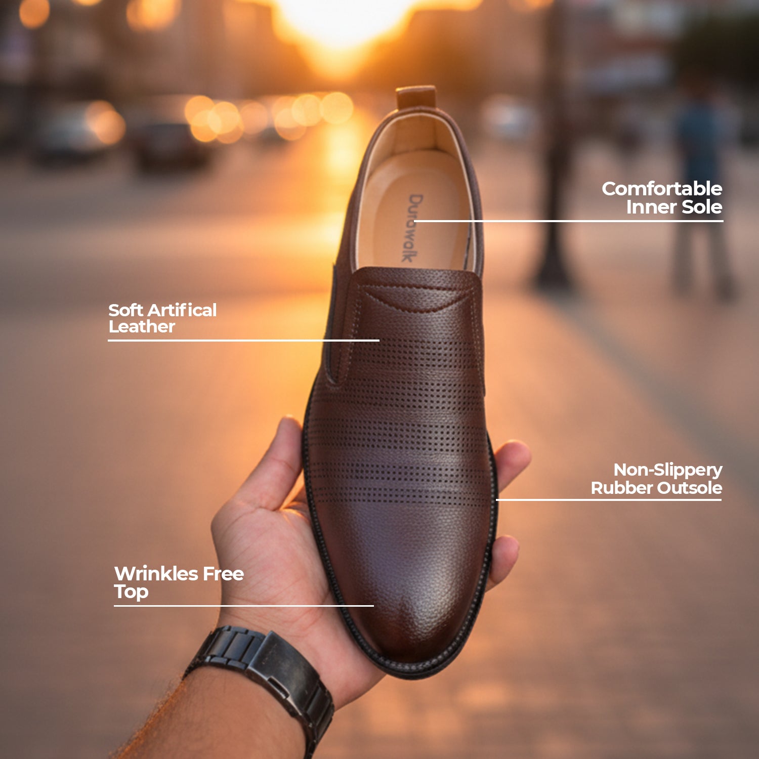 Introducing the Dura Walk, where luxury meets comfort. Crafted with precision, this shoe is more than just footwear—it's a statement of quality and attention to detail. Each pair is meticulously handcrafted by our skilled artisans, ensuring every stitch and fold is perfected to deliver unmatched durability and elegance.
